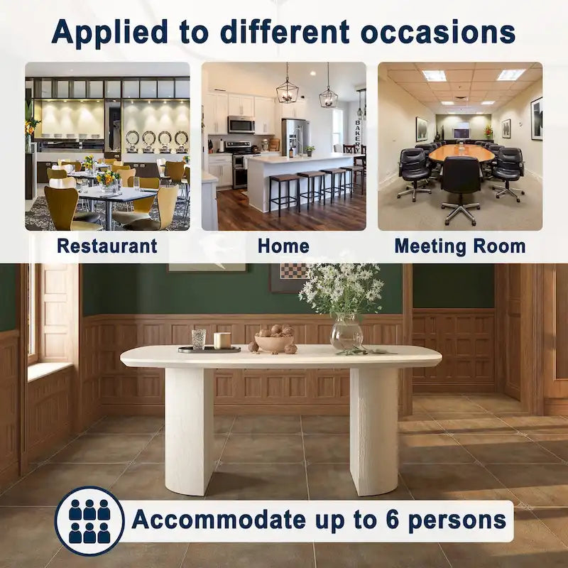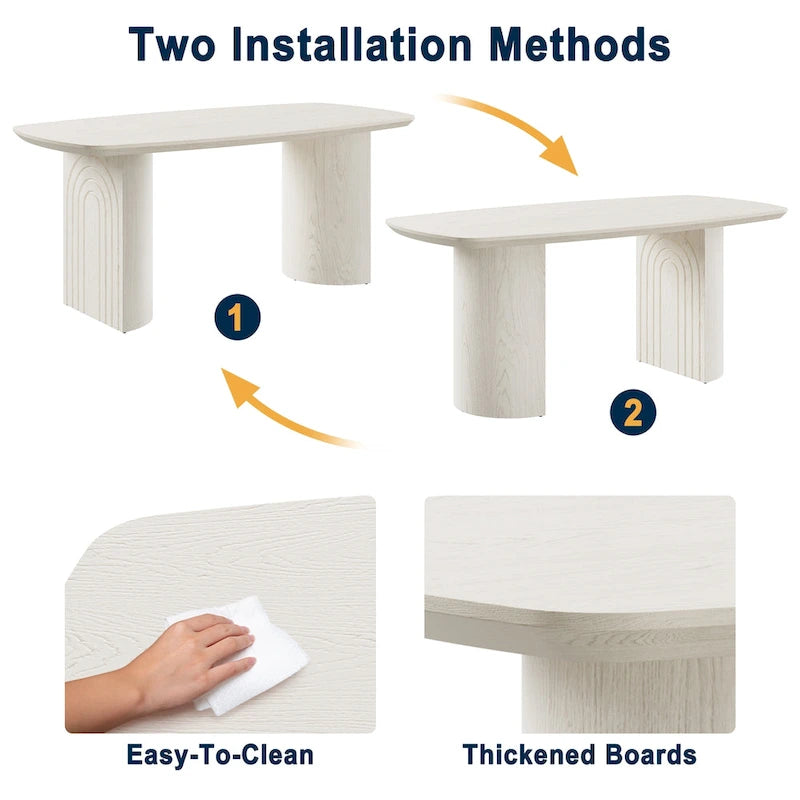 Cette table à manger est fabriquée en bois d'ingénierie épais, durable, facile d'entretien et stable. Ses pieds arborent un design classique de colonnes incurvées, tandis que ses côtés sont ornés d'un motif en U pour un soutien accru, assurant ainsi une base solide pour tous vos repas et réceptions. L'ensemble est moderne, élégant et raffiné, avec un tempérament exceptionnel.